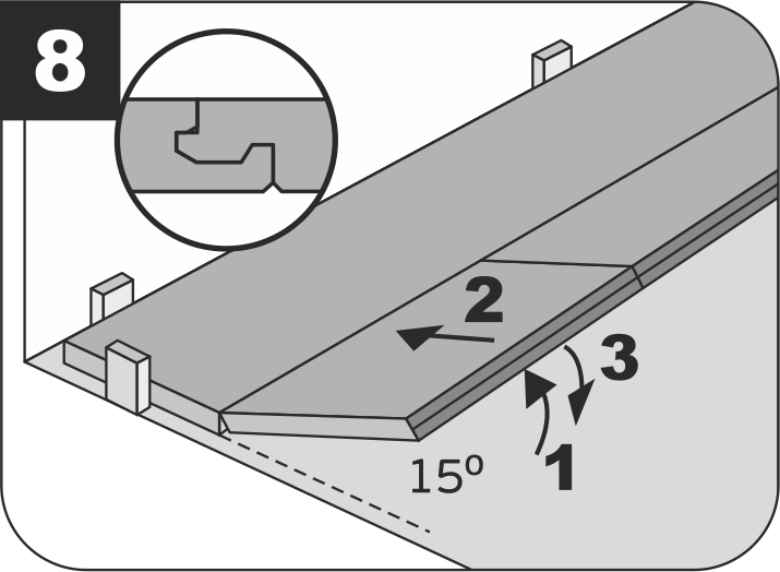 7.4.1 Плашки следующего ряда соединяются сначала по короткой стороне. После этого их нужно соединять по длинной стороне с предыдущим рядом.